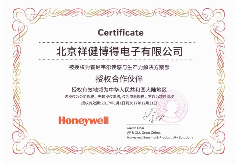 HONEYWELL 授权证书